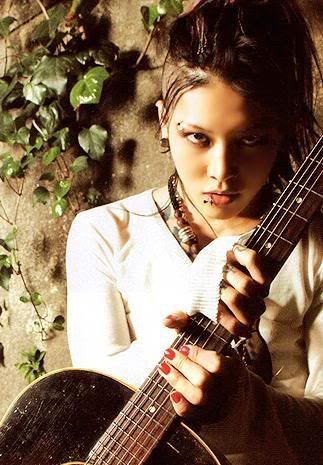 My fav guitarist from Asia..From band the GazettE which the genre is undescribeable..Sometimes dance-rock, having RnB beat sound..Aoi is the 2nd guitarist, isn't mean that he plays under the 1st guitarist..He have unique technique with his unique guitar from ESP labels..He can make the tune jump around and sound gentle in ear..He use ESP A-I 艶~en~for his 1st guitar when he performs..But sometmes he use another custom guitar from ESP such as ESP A-II 艶~en-v~or ESP double neck Forest GT-Custom (pic)..